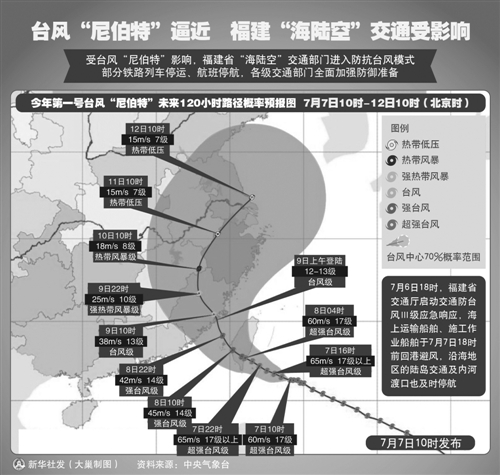 今年第一号强热带风暴“尼伯特”预计8日凌晨到上午登陆台湾东部沿海,之后向福建沿海靠近,并于9日上午在福建沿海再次登陆。届时,台湾中北部、福建中北部、浙江南部和西部、江西东北部、安徽南部、江苏东部等地有大到暴雨,浙江东南部和福建东北部局地有特大暴雨,预计台风在陆上滞留时间长达50个小时以上。