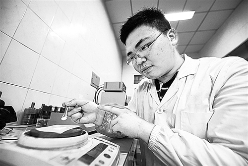 2013年从西南大学化学化工学院毕业的黄兴亮现在拥有2家公司,年销售额达700万元。作为公司总经理,这个喜欢搞技术发明的“90后”希望把公司办成沟通实验室与市场之间的桥梁。创业4年来,黄兴亮发现,最适合大学生创业初期做的项目应该是“小而美”的,是大企业看不上、小企业又做不好的,2014年研发的餐具除垢剂就是这样一款产品,市场反响很好。图为黄兴亮在西南大学实验室内做实验。 新华社记者 唐 奕摄