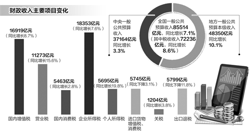 上半年,税收收入为72236亿元,占财政收入比例超过八成,同比增速为8.6%。在整体平稳增长的情况下,一些结构性变化反映出改革效应正逐步释放。