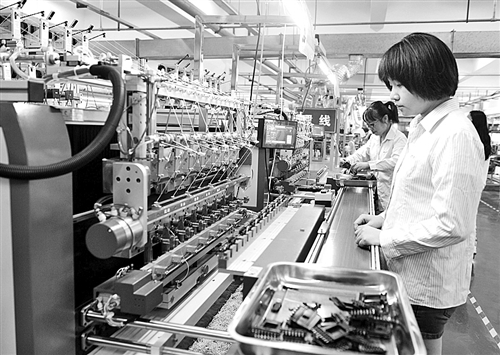江苏海安县积极引导企业由粗放型向高端型转型,鼓励科技创新,完善质量体系。今年以来,该县共投入5.61亿元,对28家规模以上工业企业实行产品或技术的转型升级,全力打造经济发展新动能。图为江苏晨朗电子集团新上线的自动化生产线投入运行。