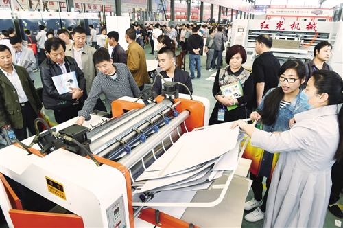 河北省统计局最新数据显示,今年上半年,河北装备制造业增加值占规模以上工业比重升至25.3%,首次超过钢铁业。这标志着河北工业结构调整取得突破性进展。图为第九届中国·河北东光纸箱机械国际博览会现场。傅新春摄