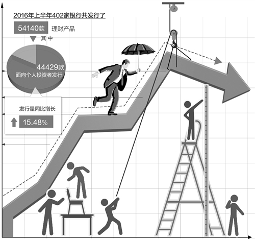今年以来,银行理财产品发行量依然保持较快增长。普益标准数据显示,2016年上半年402家银行共发行了54140款理财产品,其中面向个人投资者发行的理财产品达44429款,发行量同比增长15.48%。普益标准研究员魏骥遥说,预计下半年银行理财产品整体收益率仍将下滑,但下滑幅度可能出现收窄,除结构性理财产品外,面向普通个人投资者的封闭式预期收益型理财产品收益率将很难超过4.5%。