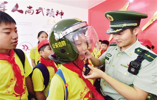 当日,由福建省福清团市委和福清元洪少年宫组织的“小伙伴快乐夏令营”走进福清市公安边防大队派出所营区。30余名小学生在营区里与边防官兵互动交流,零距离体验警用装备,接受国防教育和爱国主义教育,共迎“八一”建军节到来。