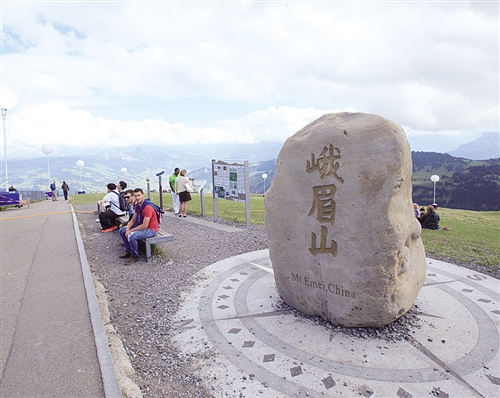 这张8月1日拍摄的照片显示,一块重约8吨的峨眉山石立在瑞士里吉山顶。瑞士里吉山景区市场销售负责人罗格·约瑟2日表示,作为峨眉山的“姐妹山”,里吉山今年将在景区内增设对峨眉山相关旅游信息的多语种介绍,协助推广峨眉山旅游。 新华社发