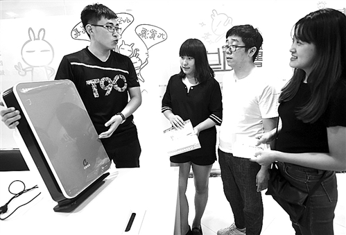 暑假期间,河北省廊坊市积极鼓励大学生暑期自主创业,为大学生免费提供办公场地、政策咨询、项目推介、创业培训指导等一站式服务,构建面向大学生的众创空间。近年来,廊坊通过多种渠道积极搭建创业就业平台,为创业大学生提供良好的创业环境和孵化服务,同时对具有潜力的创业企业进行跟踪指导和免费服务,以创业带动就业。图为大学生在廊坊借助创业孵化器平台对自主研制的超静音空气净化器进行项目推介。 新华社记者 李晓果摄