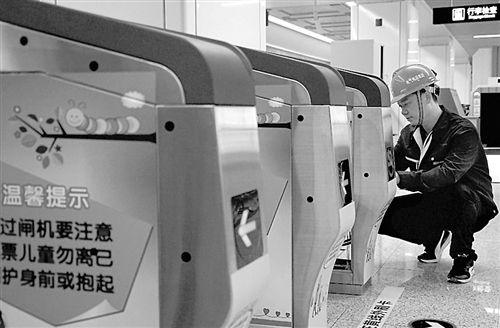 8月12日晚,中铁电气化局三公司的工作人员在检测郑州地铁2号线的自动售检票系统。