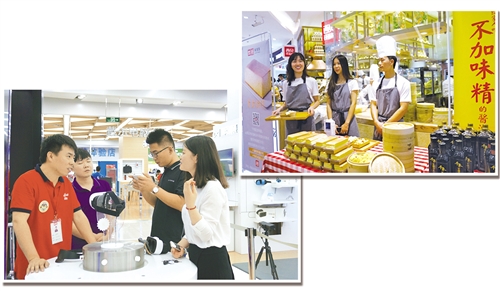 在北京家乐福四元桥店,消费者络绎不绝。店长何赛告诉记者,这家店于2015年11月27日开业,超市卖场面积达1.1万平方米,是家乐福亚洲最大的店铺,同时也是“绿色旗舰店”。
