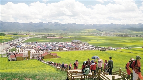据了解,门源油菜花文化旅游节日前已在门源县开幕,系列活动由6月持续至9月,包括那达慕大会、锅庄舞表演、美食节等14项活动。门源县旅游局副局长李晓清介绍,到今年,门源油菜花节已连续举办了17届。以花为媒,扩大了门源文化旅游的知名度,使门源百里油菜花成为一处让游客青睐的美丽风景和拉动地方经济、增加百姓收入的文化旅游“金名片”。