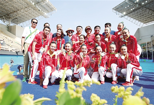 继伦敦奥运会摘银后,中国花游姑娘19日在里约奥运会上再获集体项目银牌。19日进行的集体项目自由自选比赛中,中国队收获97.3667分,俄罗斯队则以99.1333分高居榜首。而在前一日的技术自选比赛中,“霸主”俄罗斯队也是领先中国队不到2分。最终,俄罗斯队以196.1439分的总分连续第五次折桂,中国队以192.9841分收获亚军。中国姑娘孙文雁表示,花游在中国开展的历史很短,能取得如今的成绩已经很不错。孙文雁之前与黄雪辰搭档,获得双人银牌,刷新了中国队在该项目上的历史最佳成绩。
