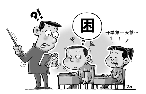 点 评 开学了,公交车上、自行车后座上、私家车里,不时可见睡眼惺忪的孩子。近日,长沙市教育局发出通知,从今年秋季学期开始,城区小学生上课时间推迟至8:30,保证小学生每天睡眠10小时。这一试图用行政措施推动小学生“睡够”的做法,引发社会广泛关注。其实,让学生“睡得好”是重大民生问题,也是一道难题。破解这道题,需要政府、家长、社会形成合力。学校要严控作业量,家长也不应给孩子增加过多课外负担。总之,社会、学校层面应该把更多时间还给孩子,不让相关规定变成一纸空文。 (时 锋)
