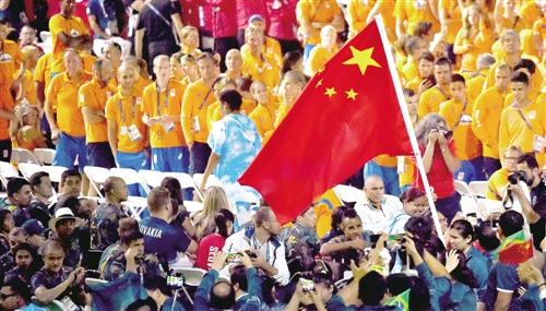 9月18日,第十五届夏季残疾人奥林匹克运动会闭幕式在巴西里约热内卢马拉卡纳体育场举行。图为中国国旗入场。 新华社记者 朱 峥摄