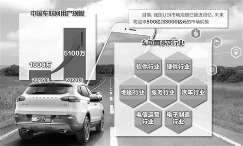 UBI车险(Usage Based Insurance)是车联网产业的重要组成,是指对驾驶里程、驾驶时间、驾驶行为习惯等综合分析并判定驾驶员的安全风险等级,从而提供差异化的保险。使用UBI车险的智能网联终端,能让简易事故8分钟撤离现场成为可能。目前,我国UBI市场规模已接近百亿元,未来将迎来800亿到3000亿元的市场规模。