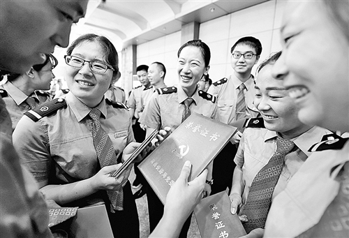 9月23日,第十二届江西省铁路职业技能大赛客运赛区决赛在南昌客运段结束。本次比赛包括客运值班员、铁路客运员、铁路售票员、铁路行李员等7个工种的212名选手参与比赛。图为获奖选手在一起交流,分享喜悦。 鲍赣生摄