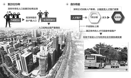 深圳市发改委数据显示,根据“十三五”规划,到2020年,深圳市常住人口发展目标将达到1480万人,而深圳现在的户籍人口仅300多万,人口结构出现严重倒挂。为了进一步吸引优秀人才,深圳在人才引进方面连出政策组合拳,出台了《深圳市人民政府关于进一步加强和完善人口服务管理的若干意见》等系列文件,目的是增辟人才、存量人口的专用入户渠道,以促进户籍人口有质量地稳定增长。