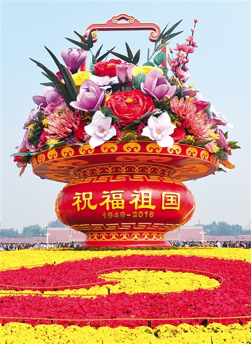 10月1日上午10时,西藏自治区在布达拉宫广场举行升国旗仪式。当天的布达拉宫广场到处洋溢着喜庆的氛围,用彩色绢花拼出的汉藏双语“热烈庆祝中华人民共和国成立67周年”“欢度国庆”等字样格外醒目。