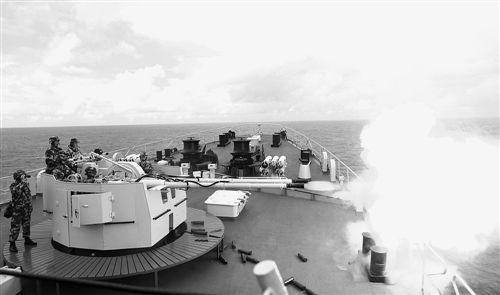 舰长下令:“导指接受目指!一、三号导弹发射!”随即,导弹呼啸而去……