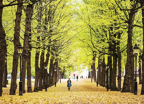 金秋十月,美不胜收。在瑞典首都斯德哥尔摩,人们在如画般的公园内欣赏秋景。 新华社/法新