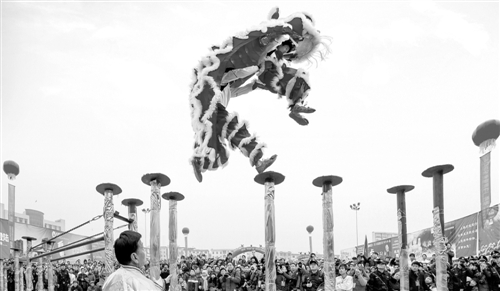 江西上栗县近日举行的群众文化活动现场,演员在表演舞狮。该县地处湘赣边界,地方文化资源独具特色。近年来,上栗先后组建楹联、诗词等10余家艺术家协会,给文化爱好者搭建交流平台。该县还出版地方特色系列丛书,推动本土传统文化的传承发展。