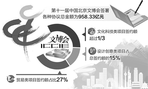 10月30日下午,历时4天的第十一届中国北京国际文化创意产业博览会主场活动圆满落幕。据不完全统计,本届文博会期间,来自海内外文化创意产业界及相关业界的近200万人次参与,共签署文化创意产业的产品交易、艺术品交易、银企合作等协议总金额958.33亿元。