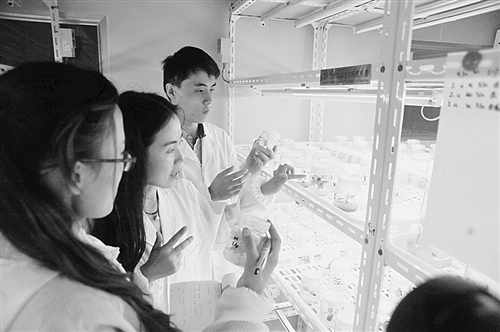 山东省济宁市任城区利用“互联网+种苗”“互联网+花卉”等信息技术建立苗木花卉O2O电子商务平台,推动苗木产业转型升级。图为科技人员正在无菌室培育新种苗。 杨 澍摄