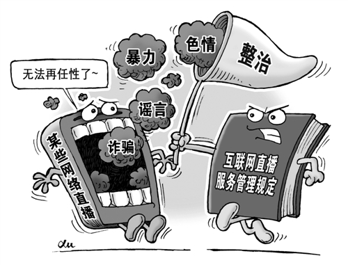 点 评 近日,国家互联网信息办公室发布《互联网直播服务管理规定》,对互联网直播进行规范管理。近年来,网络直播作为一种新型传播形式迅猛发展,但也出现部分直播平台传播色情、暴力、谣言、诈骗等信息,违背社会主义核心价值观的问题,给青少年身心健康带来不良影响。此外,还有的平台缺乏相关资质,违规开展新闻信息直播。网络直播存在的种种乱象,严重扰乱了正常的传播秩序,必须予以规范,期待管理规定的出台能够有效净化网络环境,促进网络直播的健康发展。 (时 锋)