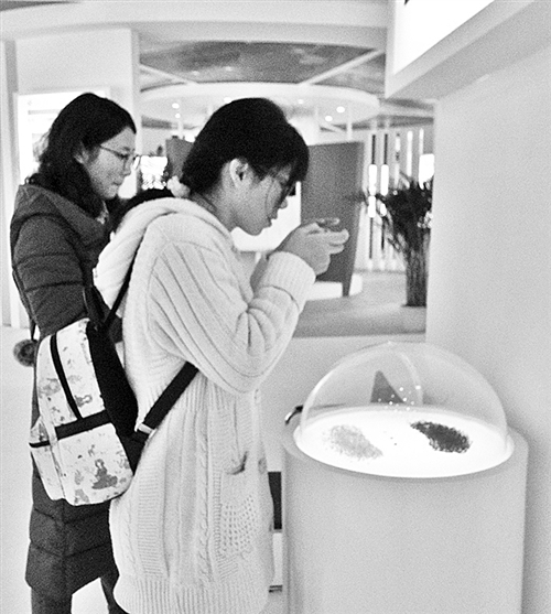 用基因技术改造的大米吸引了不少参观者驻足观看拍照。