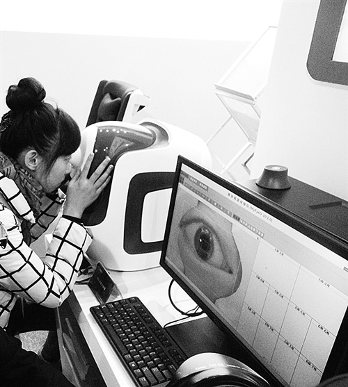 参观者在体验博奥生物公司的眼象健康成像仪。