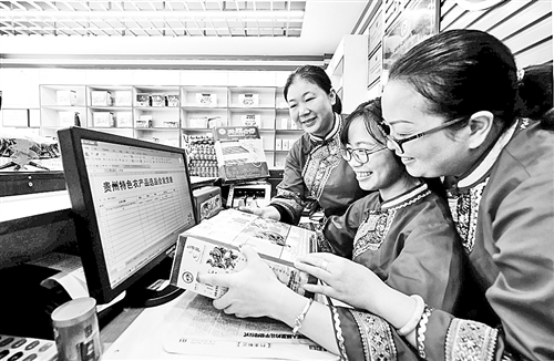 日前,贵州黔东南苗族侗族自治州天柱县民族农业特产品店里,工作人员正忙着把牛角、山茶油等商品包装、装袋、填单,发往全国各地客户。该电商店建于2006年,有农业特产品100多种,年销售额400多万元。龙胜洲摄