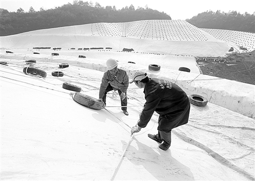 位于江西乐安县鳌溪镇大元村的城市生活垃圾填埋场正加紧建设即将竣工投入使用。该项目建成后,可日处理生活垃圾165吨,垃圾渗滤液100吨,将成为该县首个符合国家卫生标准的山谷型垃圾填埋场。 曾文才摄