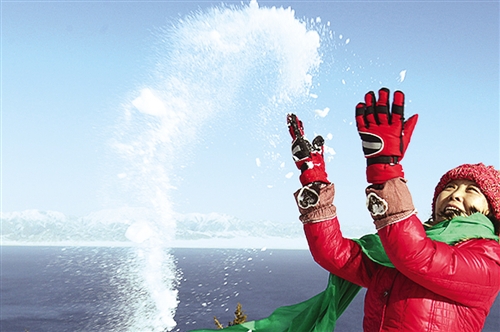 ④ 新疆博尔塔拉蒙古自治州境内的赛里木湖冰雪覆盖,湖光山色,景色迷人。 刘裕新摄