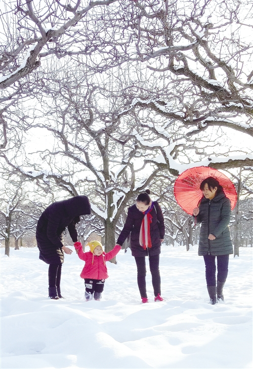 ③ 河南宁陵县石桥镇梨园晶莹剔透的白雪,吸引了大批游客前来游园赏景。 吕忠箱摄