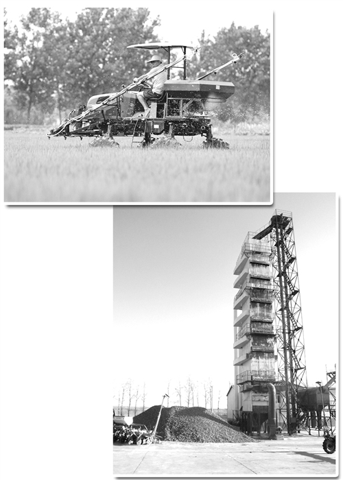 右图 黑龙江克东县昌盛乡安全村现代农机合作社现在经营着3万多亩耕地,60多台农机具,玉米、大豆基本实现了全程机械化作业。图为合作社投资建设的烘干塔。