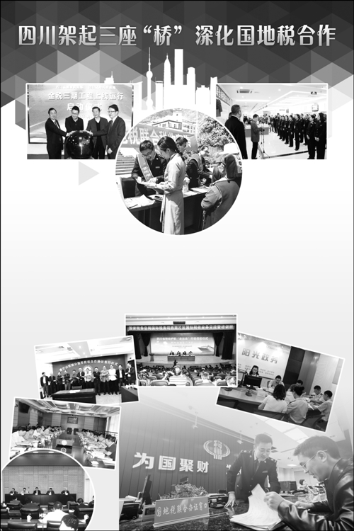 “服务一个标准、征管一个流程、执法一把尺子、信息一个仓库”——这四个“一”已成为全国税务人耳熟能详的国地税合作目标。四川国税、地税结合实际,聚焦合作要点,化解工作难点,最终在国地税之间架起三座“桥”,构建起涵盖省市县三级、囊括国地税主要业务的国地税合作工作机制,国地税合作的优势逐步凸显,开创出国地税双方双赢,纳税人、政府两方满意的可喜局面。