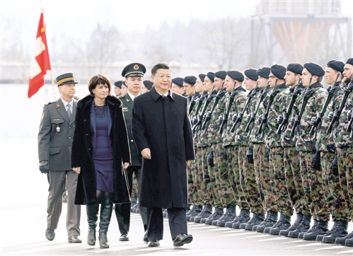 习近平向瑞士人民转达中国人民的诚挚问候和良好祝愿。习近平指出,中瑞两国和两国人民的交往和友谊源远流长。建交67年来,两国秉承相互尊重、平等相待、互利共赢的精神,不断深化政治、经济、文化、教育、科技等领域和国际事务中合作。2016年,中瑞建立创新战略伙伴关系,双边关系进入新的发展阶段。我期待同瑞方领导人和各界就双边关系及共同关心的问题深入交换意见。希望通过这次访问,加深两国人民传统友谊,拓展各领域务实合作,充实中瑞创新战略伙伴关系内涵,推动中瑞关系向更高水平发展,并共同为推进世界经济复苏注入积极因素。我还将赴达沃斯出席世界经济论坛2017年年会并赴日内瓦和洛桑访问多个国际组织。相信在中瑞双方和有关方面共同努力下,这次访问一定能够取得成功。