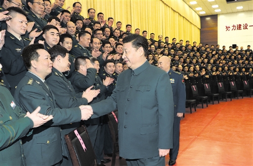 习近平强调,要深入抓好练兵备战,强化使命意识,坚持底线思维,提高训练实战化水平,促进部队实战能力提升,做到召之即来、来之能战、战之必胜。要深入抓好保持稳定工作,坚持依法治军、从严治军,把工作重心放在基层,按照“三个根本性转变”要求依法开展工作,防范重大安全问题,推动基层建设全面进步、全面过硬。在完成军事任务的同时,部队要以实际行动支持京津冀协同发展和脱贫攻坚工作,为全面建成小康社会贡献力量。
