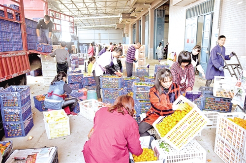 下图 1月29日,江西南丰县市山镇翠云村吴氏果业集团组织农民工加班加点分拣、加工包装南丰蜜橘,准备销往全国各地,满足春节市场消费者的需求。 袁荣生摄