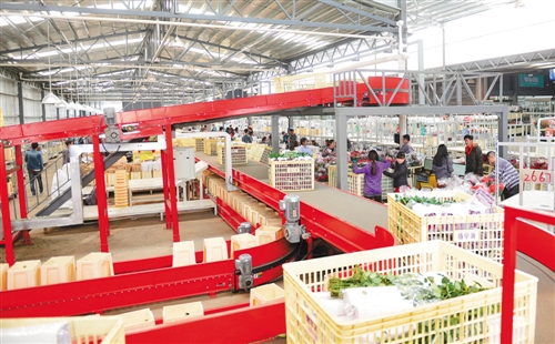 上图 2月3日,云南昆明市呈贡区斗南国际花卉交易中心员工在流水线上忙碌。当天是春节假期后上班第一天,当地花卉市场进入一年中最忙碌的时候。本报记者 高兴贵摄