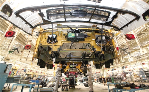 2月9日,坐落在安徽马鞍山市经济开发区的华菱星马汽车(集团)股份有限公司工人在汽车生产线组装重卡汽车。进入新年,该公司加大马力生产和销售,1月份公司重卡和专用车上装产品销量均大幅上涨,同比分别增长94.72%和112.59%,取得新年开门红。 王文生摄