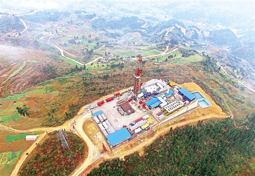 2月21日,耸立在重庆市涪陵区江东街道铁场村大山深处的涪陵页岩气田焦页91号钻井平台。该气田探明储量3805.98亿立方米,2016年产气量超过50亿立方米。目前,8000多名工人正在建设年产能50亿立方米的二期工程,努力确保今年实现产气百亿立方米目标。李 辉摄