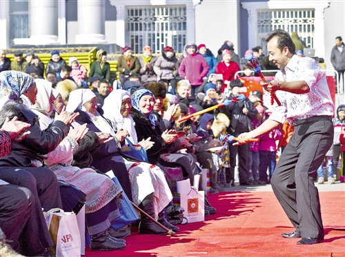 虽然天气寒冷,演出现场却是人山人海。演出结束了人们还不愿离开广场,争相上台跟艺术家合影。