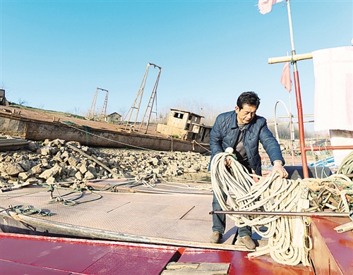 3月2日,武汉新洲区双柳街渔业队渔民胡正兵将生产网具收捡入库。当日,记者从农业部在武汉召开的专题部署会上获悉,2017年我国对长江流域水生生物保护区正式实施全面禁捕,让水生生物休养生息,以切实加强长江水生生物资源和水域生态环境保护。 熊 琦摄(新华社发)