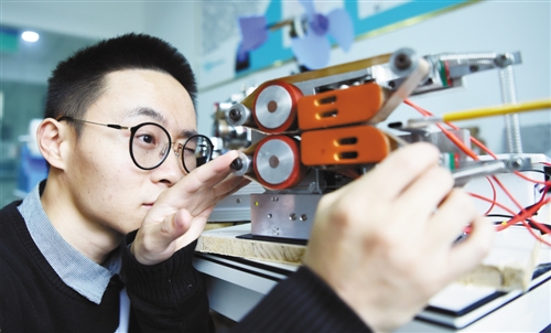 杨成兴今年27岁,被称为“科技怪才”。他从小爱好发明,高中毕业时已获得“可伸缩安全笔”、“自动保湿节水花瓶”、“多功能保健鞋”3项国家专利。2012年,已是重庆电子工程职业学院机电工程专业学生的杨成兴在学校的支持下成立了微型企业——重庆新狼科技有限公司,获得政府4.2万元创业补贴资金。作为学生创业者,杨成兴的创业之路并非一帆风顺,他创业8次,失败6次,但他越挫越勇。后来,在学校和政府相关部门的支持下,杨成兴又以“资金+项目”入股等形式,成立了成都渔乐江湖网络科技有限公司和成都蚁世纪网络科技有限公司。 赵杰昌摄影报道