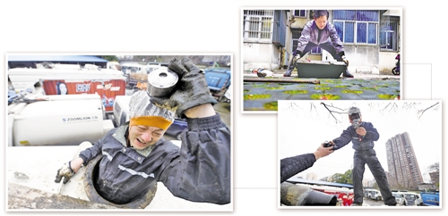 张凤彪带领清运组平均每年清理化粪池400座、窨井1800多座,疏通下水管道近万米。在承担39座直管免费公厕粪便清运的同时,还义务承担起辖区500多个居民生活区的公厕、化粪池粪便清运工作。 张大岗摄影报道