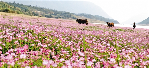 “喷鼻香十里荷花”也是夏天。安徽铜陵的荷花园里,莲姿静雅;湖北兴山县昭君文化景区内,载歌载舞;江西上饶县茗洋湖的紫云英花海,牛儿漫步其间……