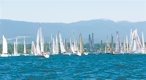第79届米拉博金杯帆船赛近日在瑞士日内瓦湖举行。该赛事从1939年开始举行,是欧洲规模最大的内湖帆船比赛,比赛路线是从日内瓦驶向小镇布夫雷并返回,全程123公里,每年都会吸引近600艘帆船参加。本报驻日内瓦记者 陈 建摄