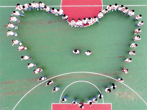 6月28日,江西南昌市西湖区朝阳小学六一班的师生在操场上摆出“红心”造型迎接即将到来的党的生日。今年是建党96周年,同时也是建军90周年,英雄城南昌的中小学通过多种形式的课内课外活动,让学生了解我们党和军队走过的光辉历程,促进小学生德智体全面发展。