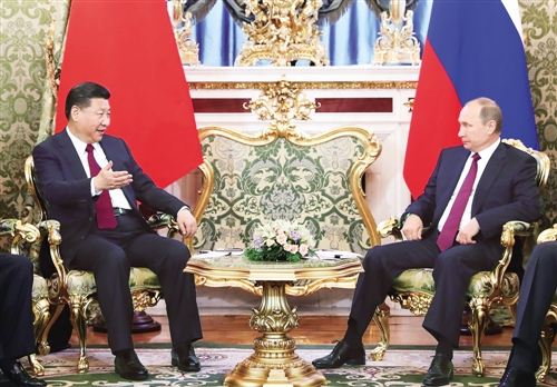普京表示,俄中关系发展得非常好。拥有高水平互信和完善合作机制是俄中关系的巨大优势。习近平主席此次访问俄罗斯具有重要意义。我同习近平主席建立了非常良好的工作关系和深厚友谊。此访期间,我同习近平主席深入交换意见,就巩固政治互信,加强各领域务实合作、深化人文交流、密切在重大国际和地区问题上沟通协调达成高度共识,访问取得圆满成功。俄方愿同中方一道,继续加强俄中全面战略伙伴协作。