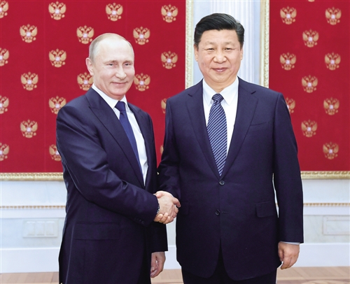 习近平表示,很高兴再次来俄罗斯进行国事访问,并同普京总统就共同关心的问题交换意见。中俄是全面战略协作伙伴,在处理重大问题时密切沟通协调十分重要。我们双方要加强合作,相互坚定支持走符合本国国情的发展道路,坚定支持对方在维护国家主权、安全、发展利益方面的政策举措。双方要在重大国际和地区问题上加大政策沟通和行动协调,共同化解风险和挑战,共同促进世界和平、稳定、繁荣。