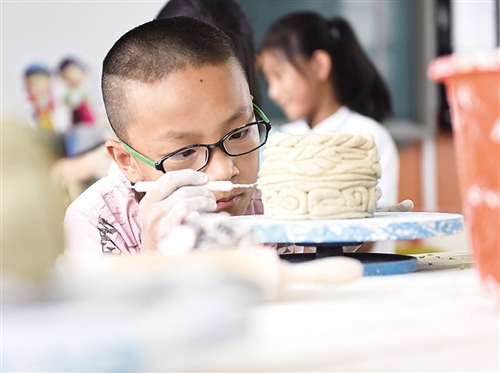清水河瓷艺距今已有800多年的历史,2011年被列入内蒙古自治区非物质文化遗产名录。近年来,清水河县全面推进“清水河瓷艺进校园”活动,在全县12所中小学中开设清水河瓷艺课程,让这一古老的技艺在校园中得到广泛传承。王 正摄