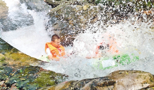 | ▲河北邢台市天河山景区,游客体验漂流的惊险刺激。 赵永辉摄 |